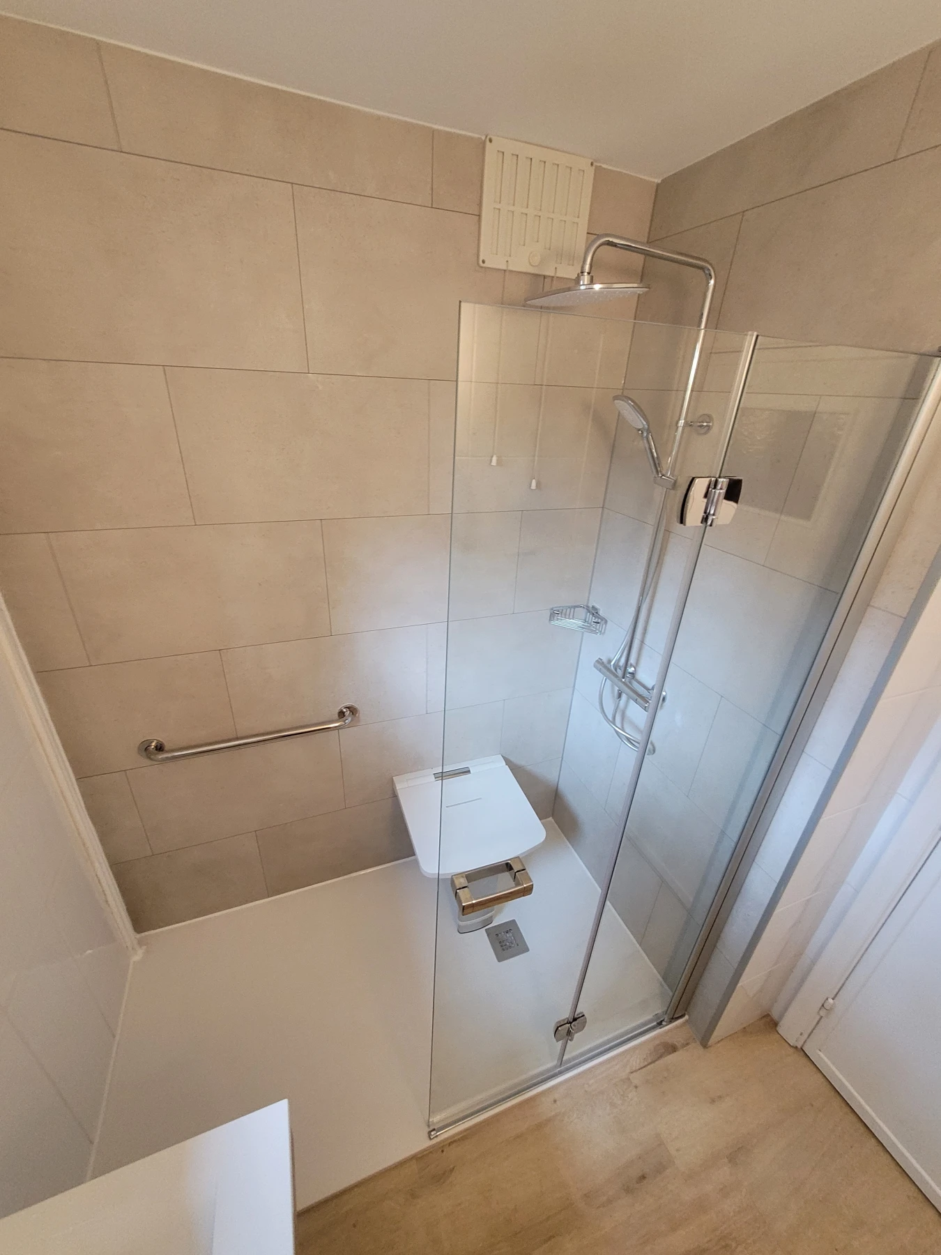 Fini la baignoire peu pratique qu'il faut enjamber, place à une douche sécurisée avec barres de maintien pour plus de confort et d'accessibilité !